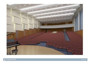 – Заміна конструкцій покриття на даху актової зали та переходів в частині тепло- і гідроізоляції, влаштування та ремонт парапетів, сходів, розміщення сучасних вентиляторів димовидалення, буде встановлено високотехнологічне обладнання сцени, звуко- і світло обладнання, екранний комплекс, зручні крісла в залі;