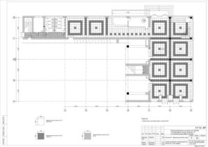 – часткове перепланування приміщень 2 поверху в осях Г-Д/2-7 під артистичні приміщення, пожежний пост і кімнату чергової, а також санвузли для цього блоку приміщень;
