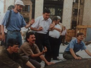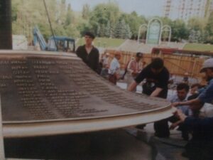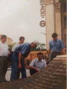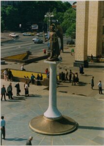 1 варіант Монументального знаку збудовано по нашому проекту на кошти КМДА та спонсорів у 1996 році. Київська міська дирекція УДППЗ “Укрпошта” – інвестор та замовник створення монументального знаку “Поштовий центр України” з постаттю Архістратига Михайла на майдані Незалежності в м. Києві.