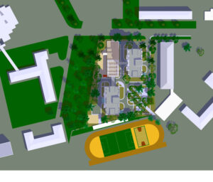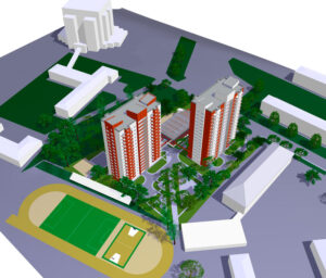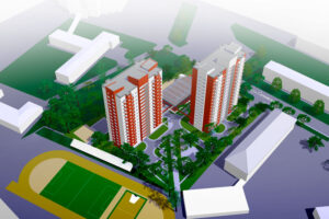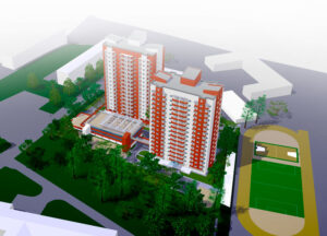Житлова група з 2-х висотних будинків, об’єднана фізкультурно-оздоровчим комплексом.